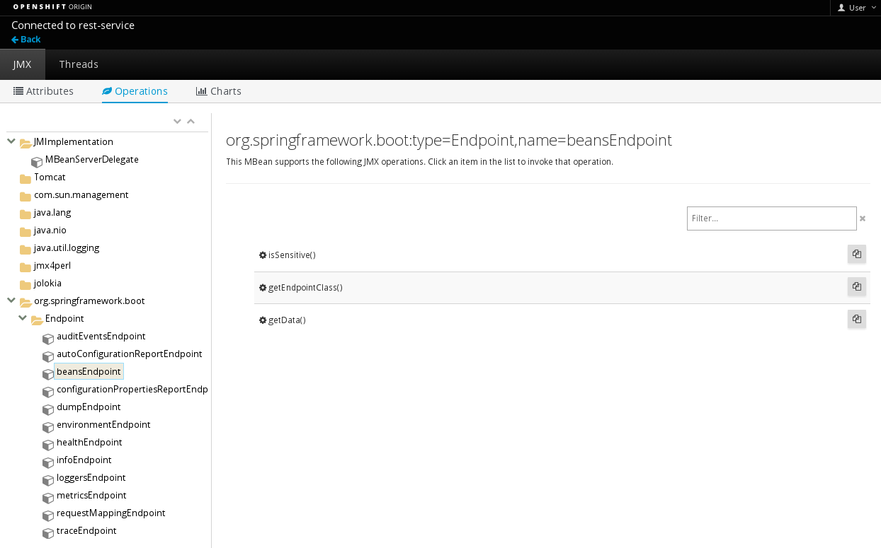 {"id":1,"name":"John Doe"}You can now also access infos about your running pods and access JMX methods and data through the Java Console